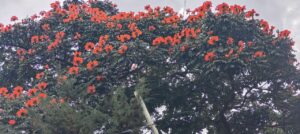 Eldoret’s scenic beauty is enhanced by a diverse array of trees, both indigenous and exotic. Among the standout species is the Nandi Flame Tree (Spathodea campanulate, or S. nilotica), an indigenous tree renowned for its brilliant showy reddish-orange or crimson flowers that bloom this time of the year providing a blend of ornamental and indigenous flora that makes Eldoret an aesthetically pleasing and environmentally sustainable city.